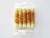 | 割いて冷やし中華の具や炒め物に入れています。子どもたちのおやつにも。添加物はもちろんのこと、砂糖も使っていないし、卵も入っておらず、アレルギー持ちのいる我が家にはとても嬉しい商品です。一本ずつセロファンで巻いてあるので保管にも便利です。 [2023年6月] |